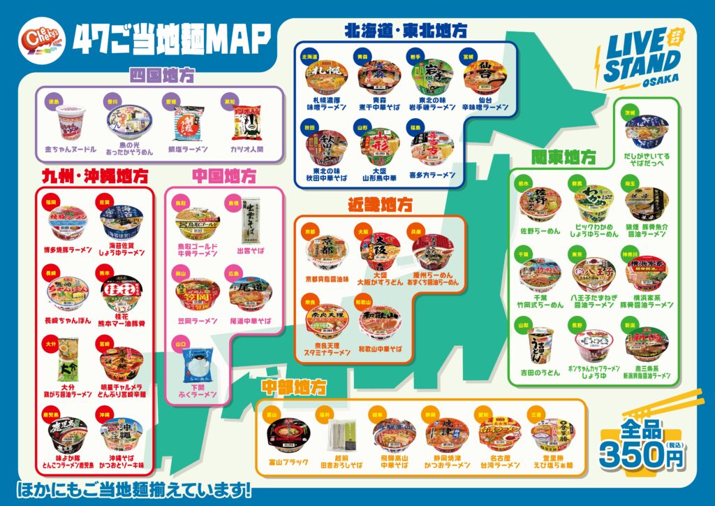 「Cheeky’s store 47ご当地麺ブース」には、よしもと住みます芸人がオススメするご当地麺が大集合します!